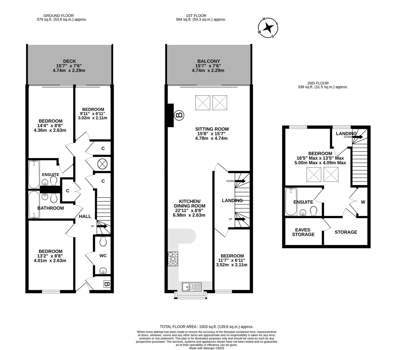 The ground floor includes a double bedroom with an en‑suite and lake views with sun deck access, plus a single bedroom, a second double bedroom, and a family bathroom. The first floor houses an open‑plan kitchen, living, and dining area with spectacular lake views, along with a single/bunk bedroom and an additional sun deck. The top floor features a principal bedroom (or guest suite) with an en‑suite. EPC Rating: C.