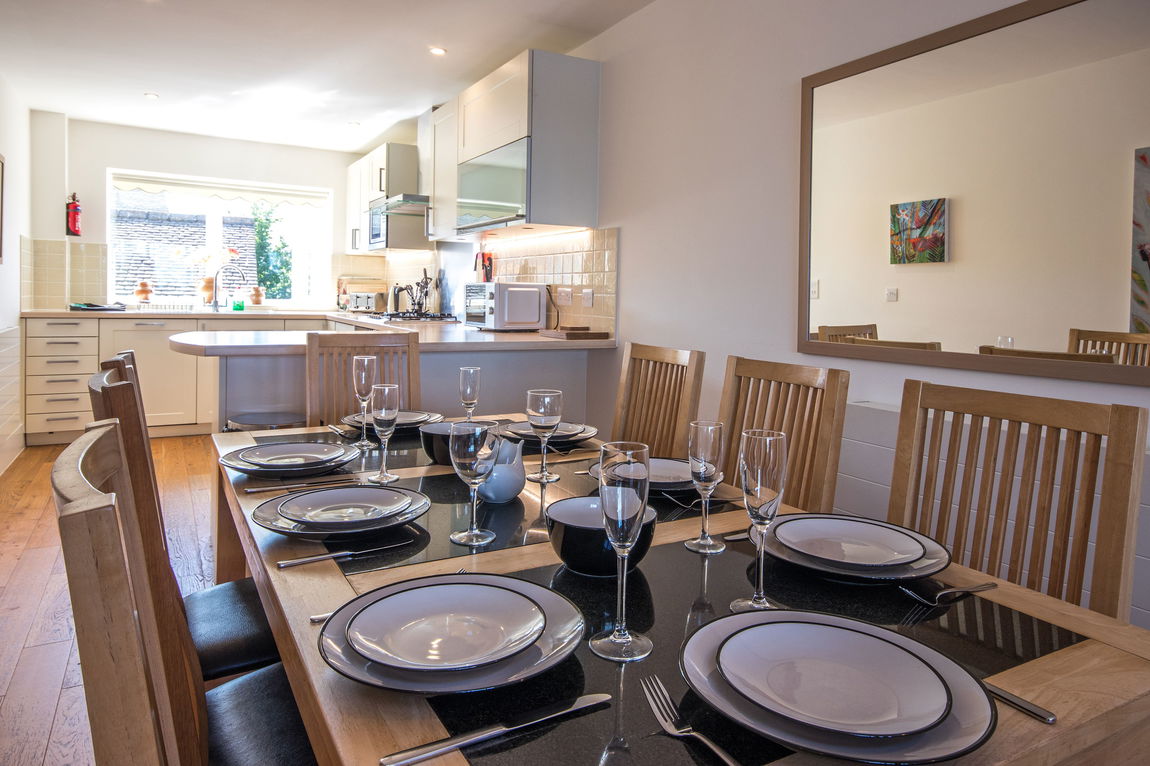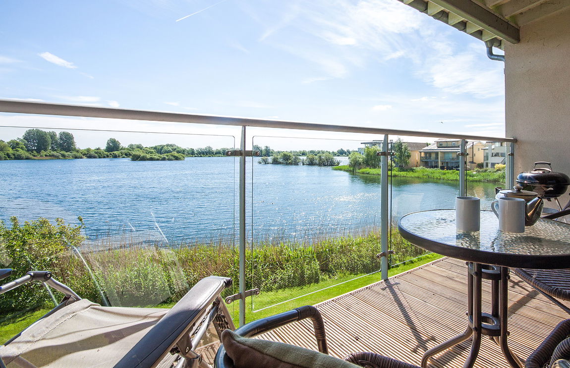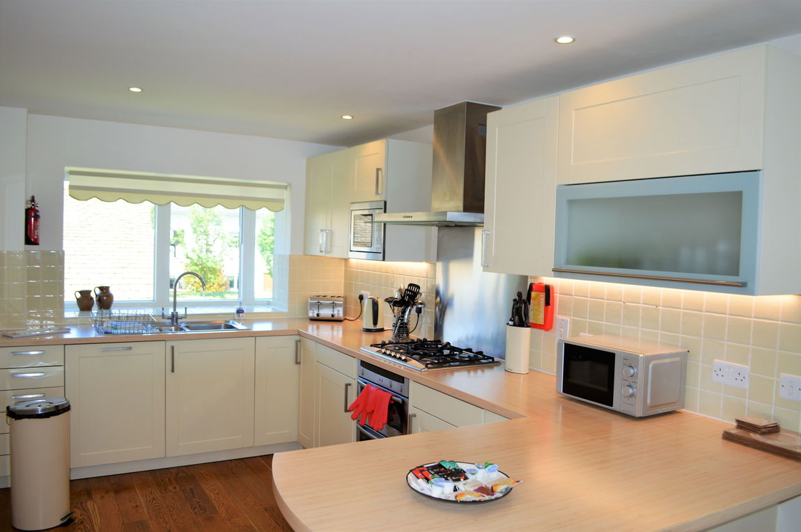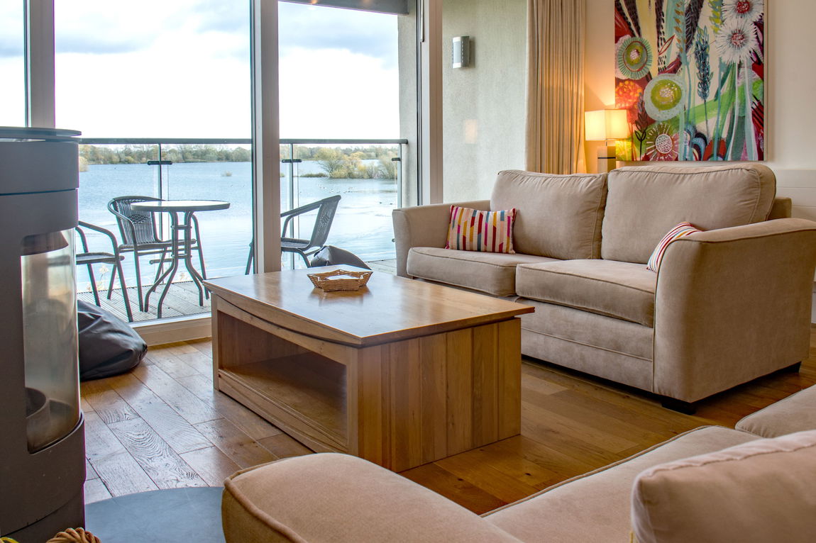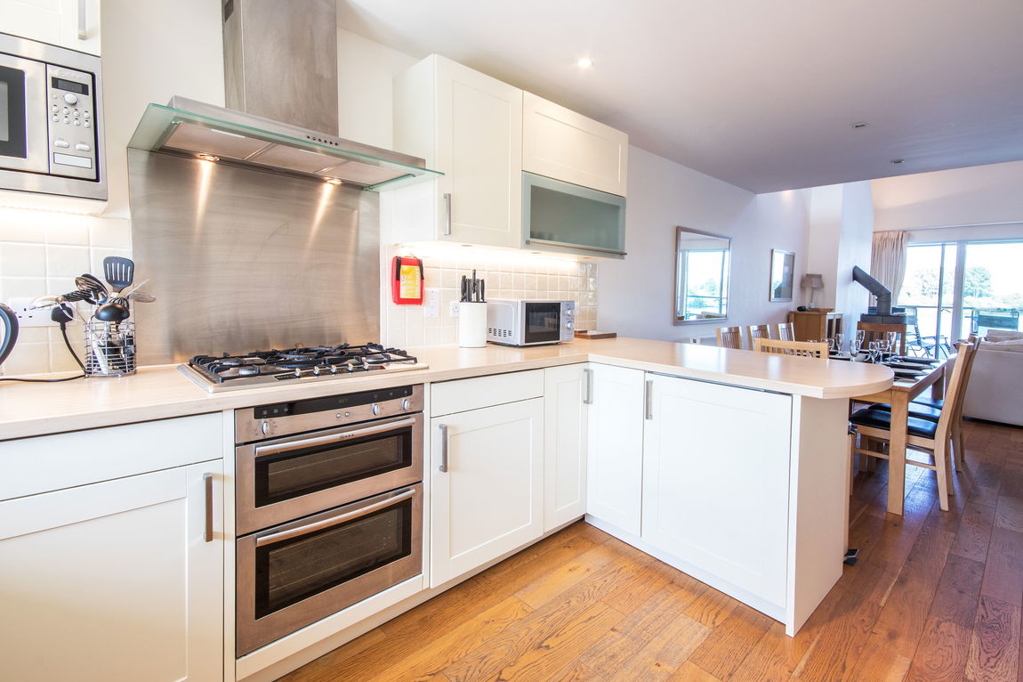 KITCHEN The kitchen is open plan, leading into the living area and allows more views to the lake. A good range of modern kitchen units with integrated appliances. Oak flooring throughout.