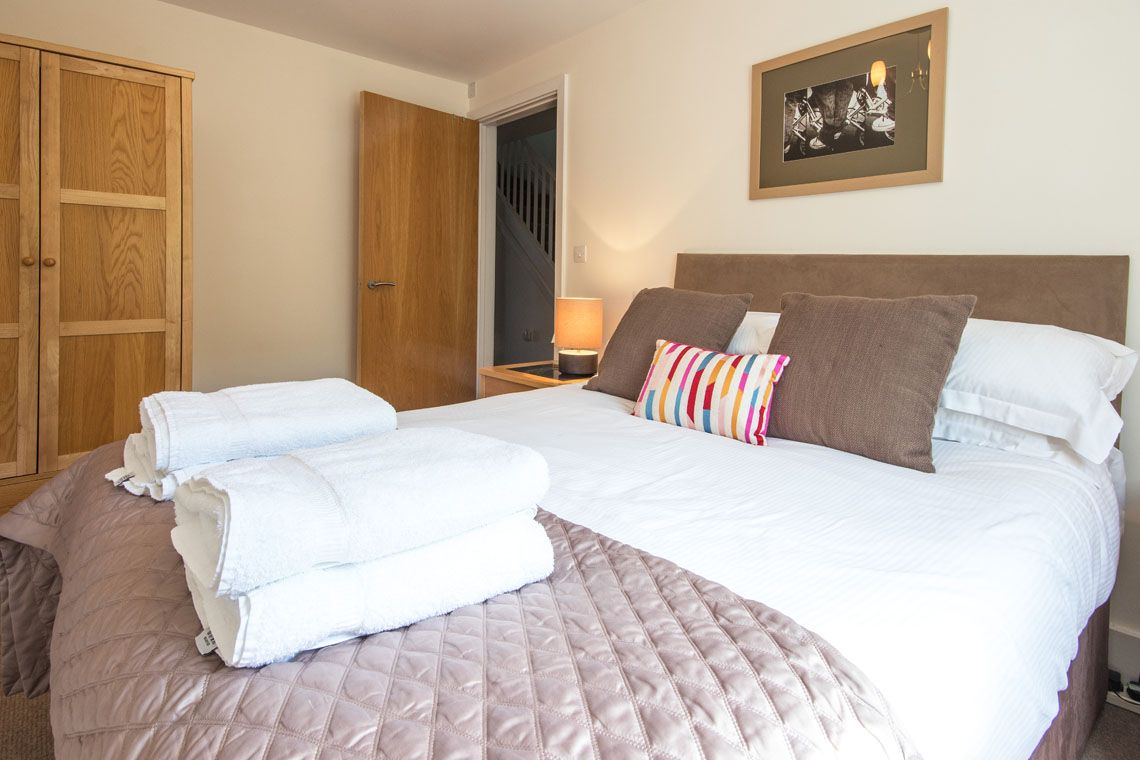 BEDROOM THREE On the ground floor, a great sized double bedroom, suitable for double or twin beds. Built in cupboard with useful hanging space. Carpeted flooring.