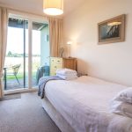 BEDROOM TWO Situated next door, this bedroom is a single, and again has access to the large ground floor sun deck. Built in cupboard providing useful hanging space. Carpeted flooring.