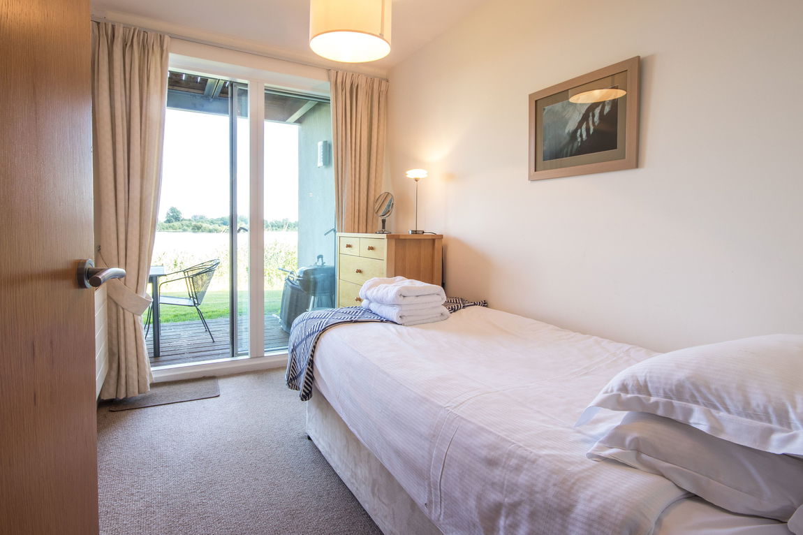 ACCOMMODATION This three‑storey, five‑bedroom holiday home features reverse living accommodation. On the ground floor, you'll find three bedrooms—one with an en‑suite bathroom—and a family bathroom, along with utility and storage cupboards. The first floor boasts a spacious living/dining area with an open‑plan kitchen, plus a single/bunk room bedroom. The second floor hosts a guest suite comprising a double bedroom with an en‑suite bathroom and fitted wardrobe. The property is well‑maintained throughout, showcasing neutral colours, wooden floors, and a sun deck overlooking the lake.