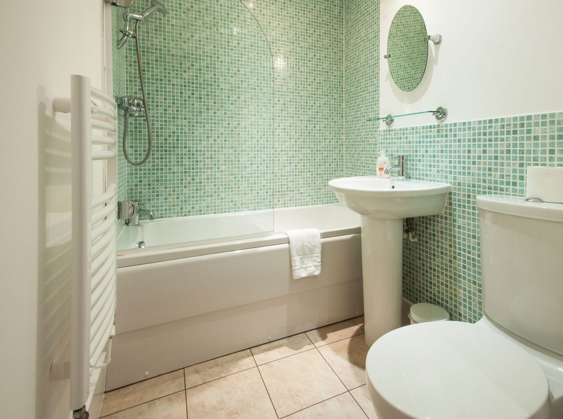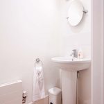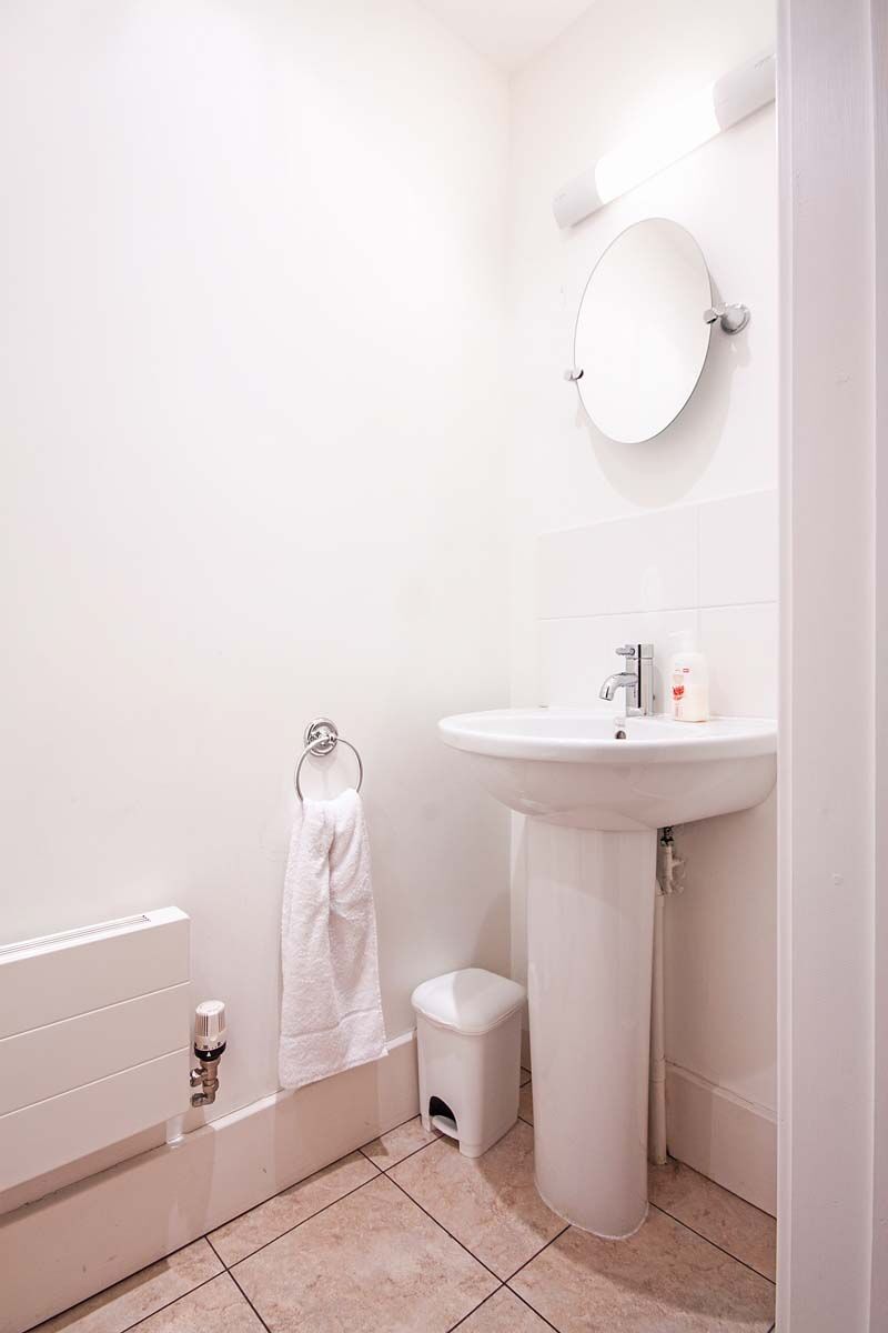 FAMILY BATHROOM The Family bathroom has a shower, WC and wash-hand basin all in white sanitaryware. Tiled flooring.