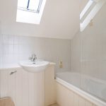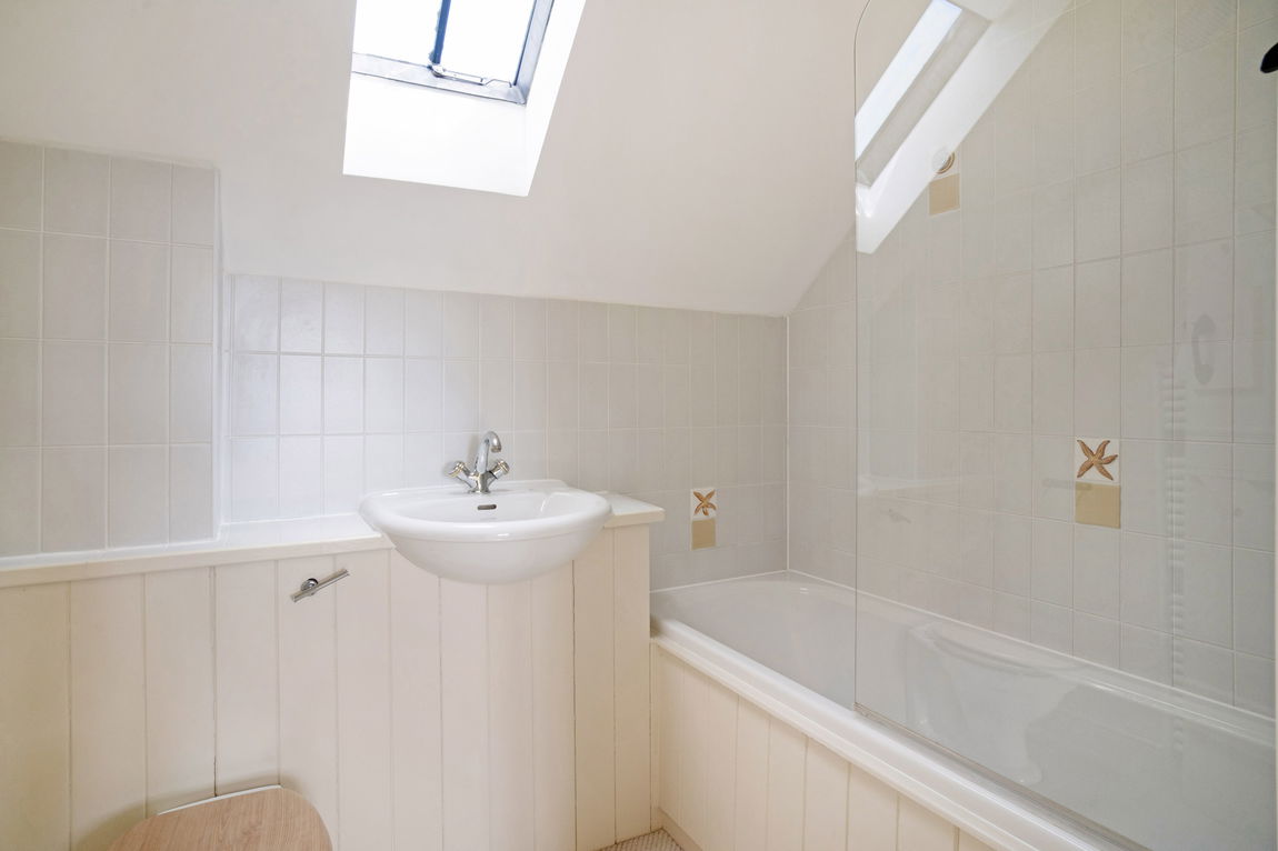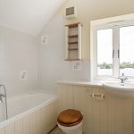 FAMILY BATHROOM: Bath with shower over, WC and wash hand basin. Heated towel rail. Roof light and airing cupboard.