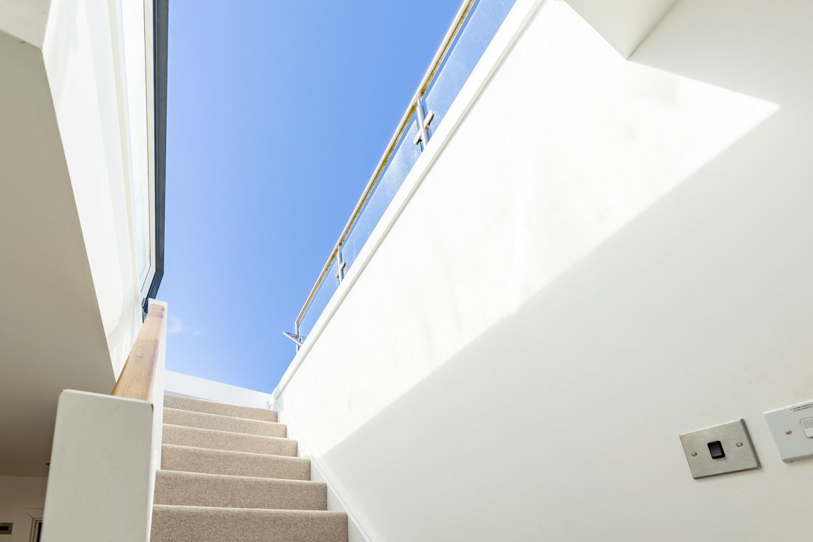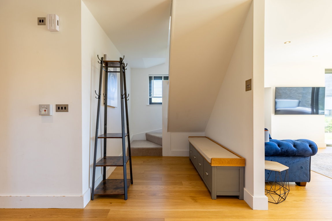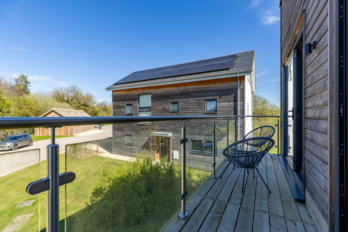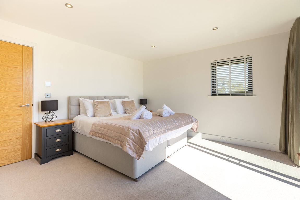 Stairs continue to the top floor, where you’ll find an impressive roof terrace enjoying elevated views across Minety Lake and the surrounding landscape.