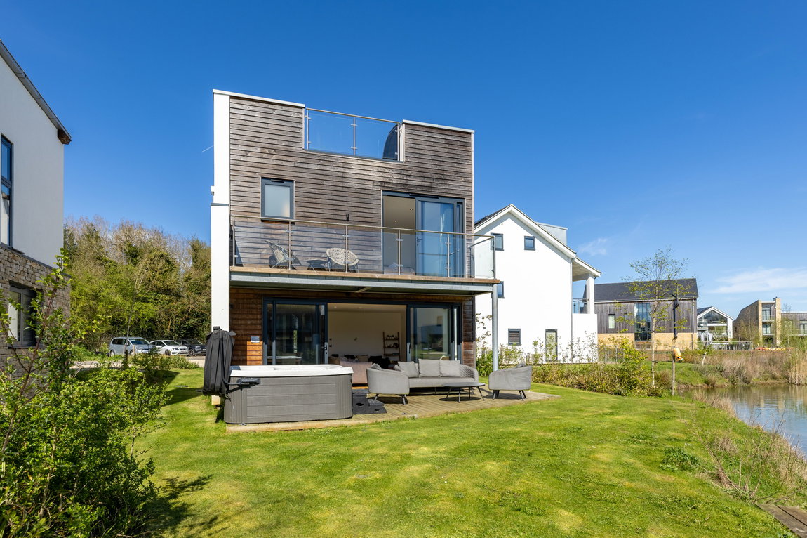 A stunning contemporary four-bedroom holiday home, ideally positioned within the exclusive Lower Mill Estate on the sought-after Minety Lake. Offered freehold with year-round holiday use, this beautifully presented property is a proven and successful holiday let. The ground floor features a spacious open-plan living, kitchen and dining area with sliding glass doors opening onto a private lakeside deck with hot tub, alongside a double bedroom and WC.