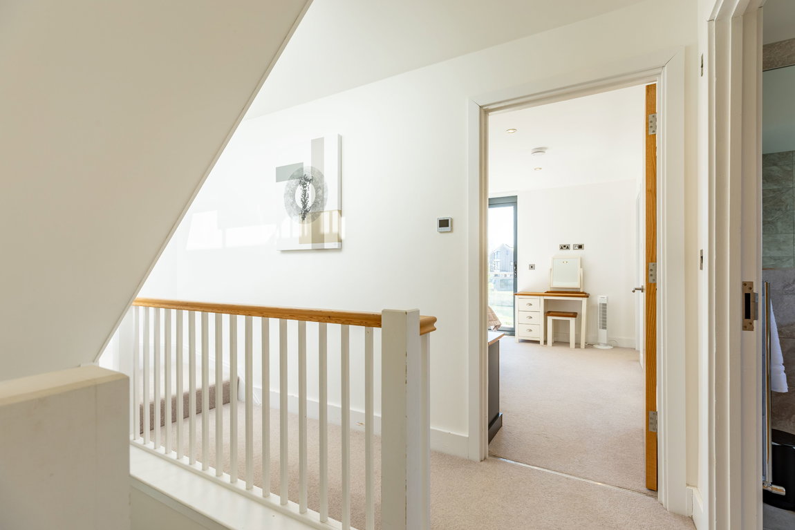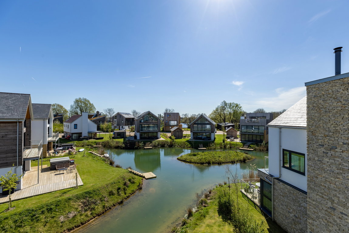 First Floor: The first-floor landing leads to a spacious principal bedroom with en-suite and a private balcony overlooking Minety Lake. There are two further double bedrooms on this level, along with a family shower room.