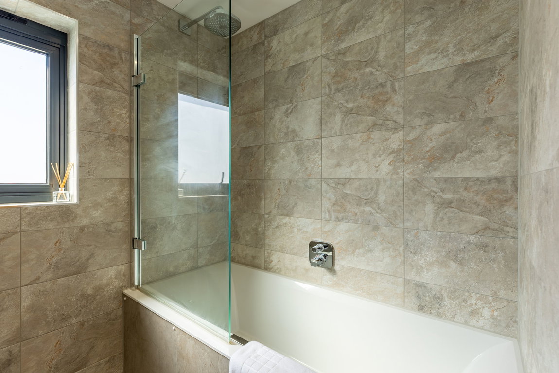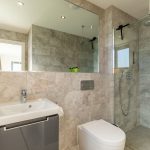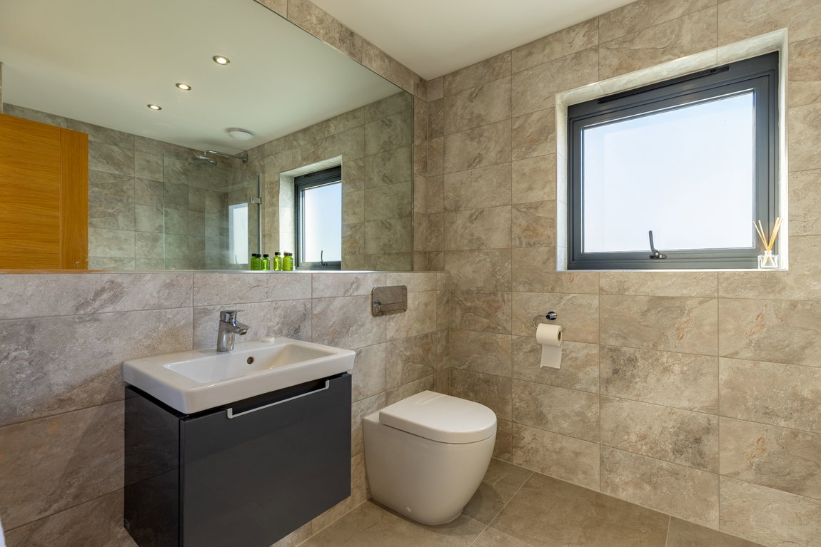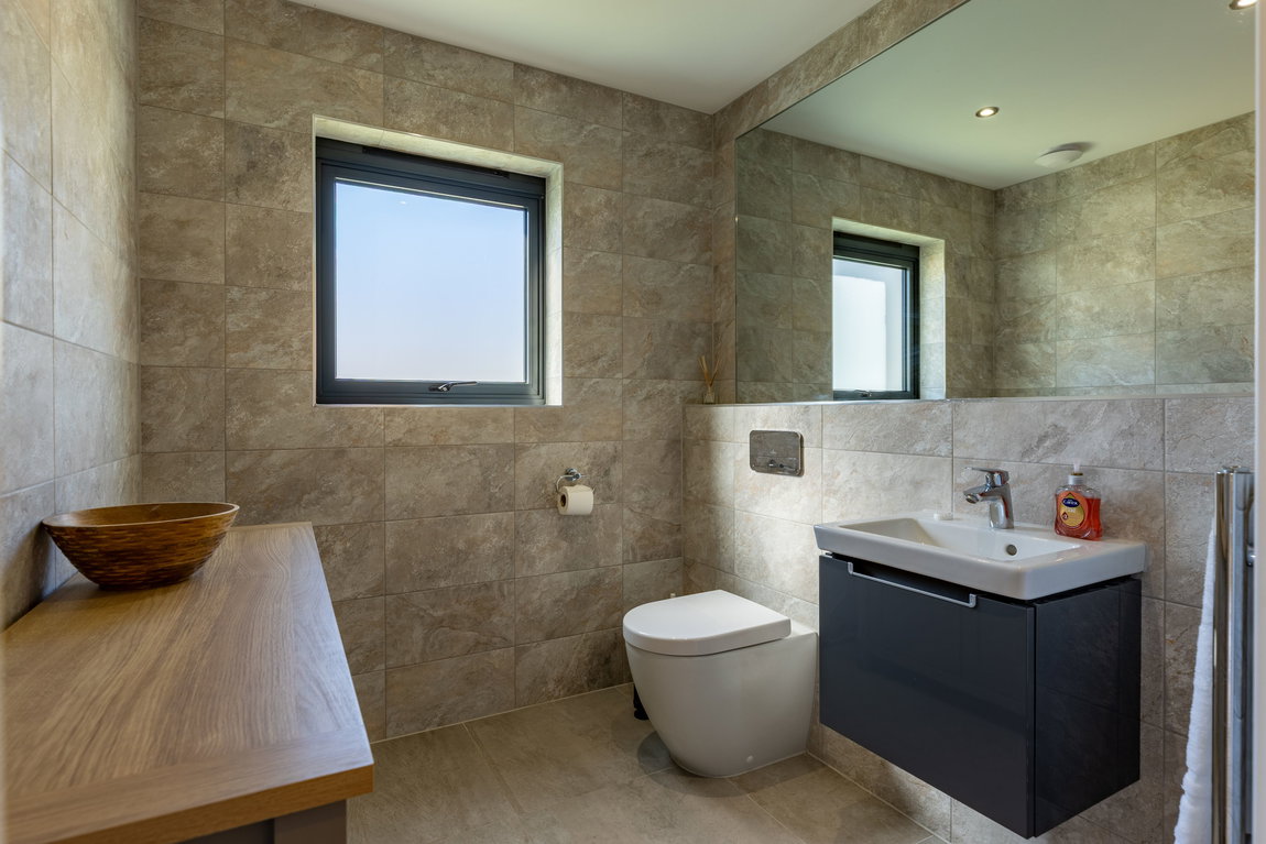 The impressive en-suite is fully tiled and well-appointed, featuring a walk-in shower, WC, wash hand basin and heated towel rail, along with the added comfort of underfloor heating.