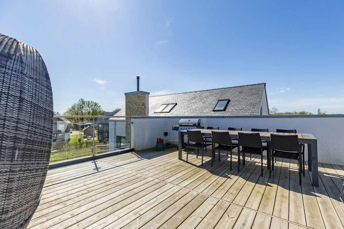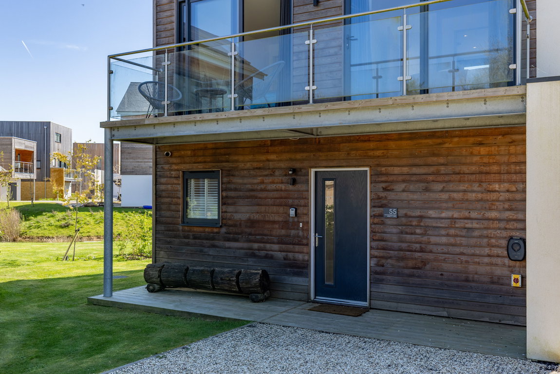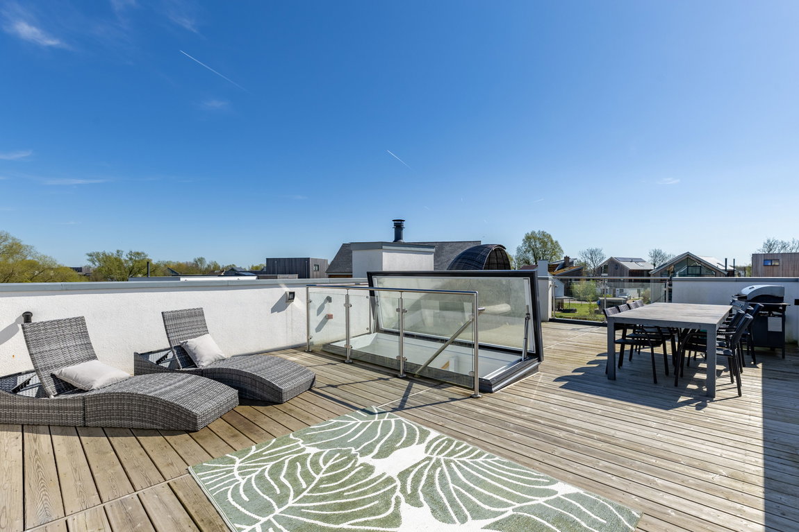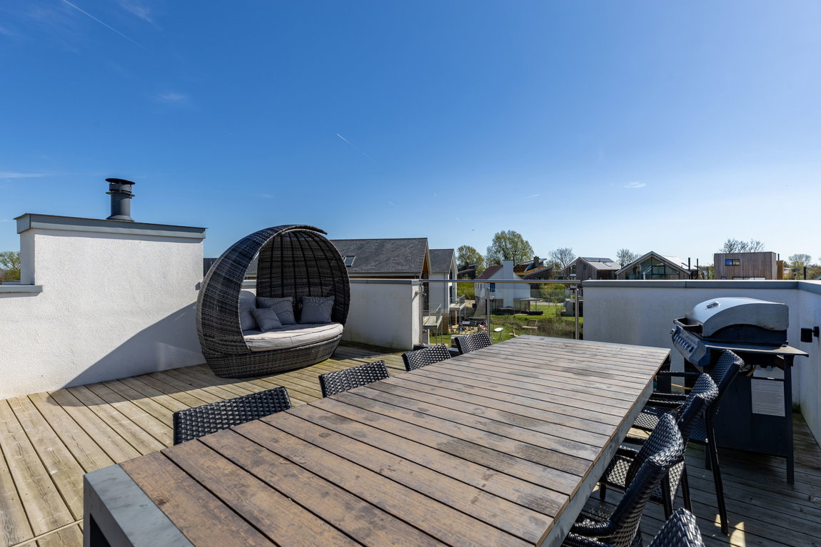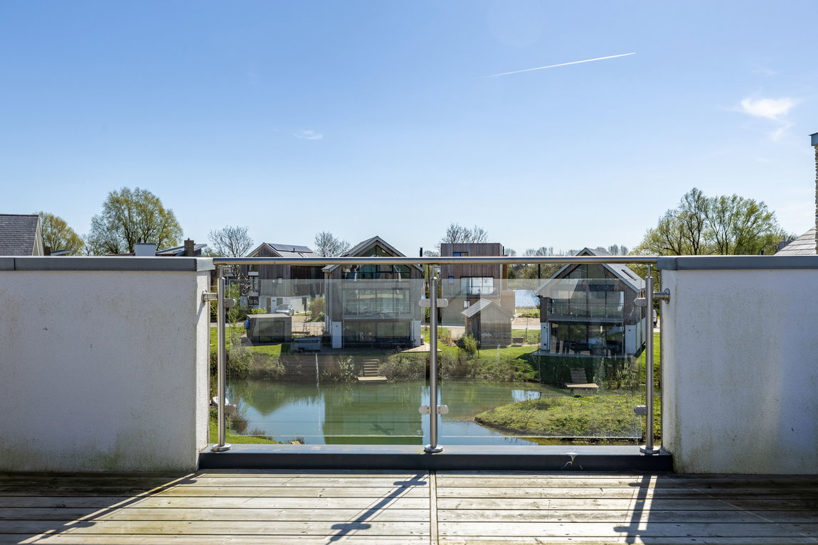 Upstairs are three further generous bedrooms, including a principal suite with en-suite. A standout feature is the full-width roof terrace, offering far-reaching views across the lake and surrounding nature - perfect for relaxing or entertaining.