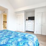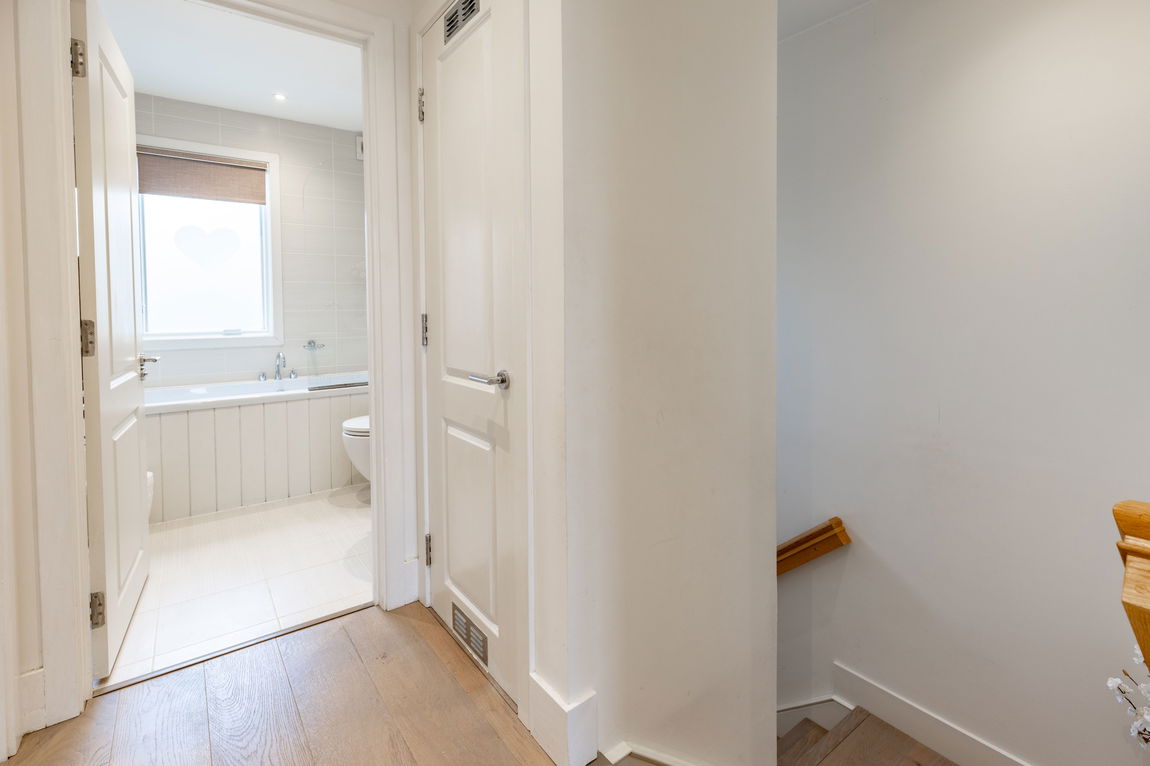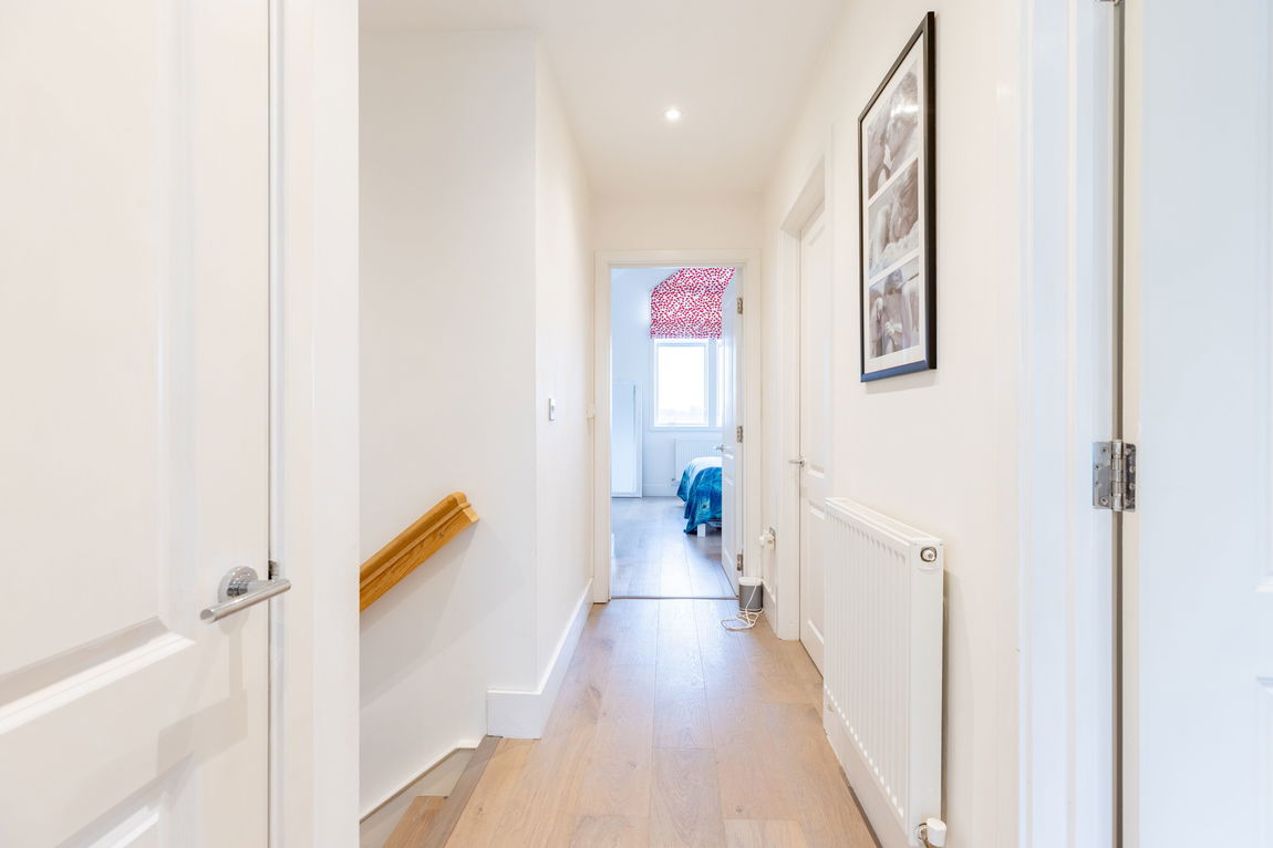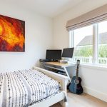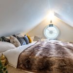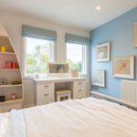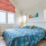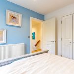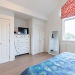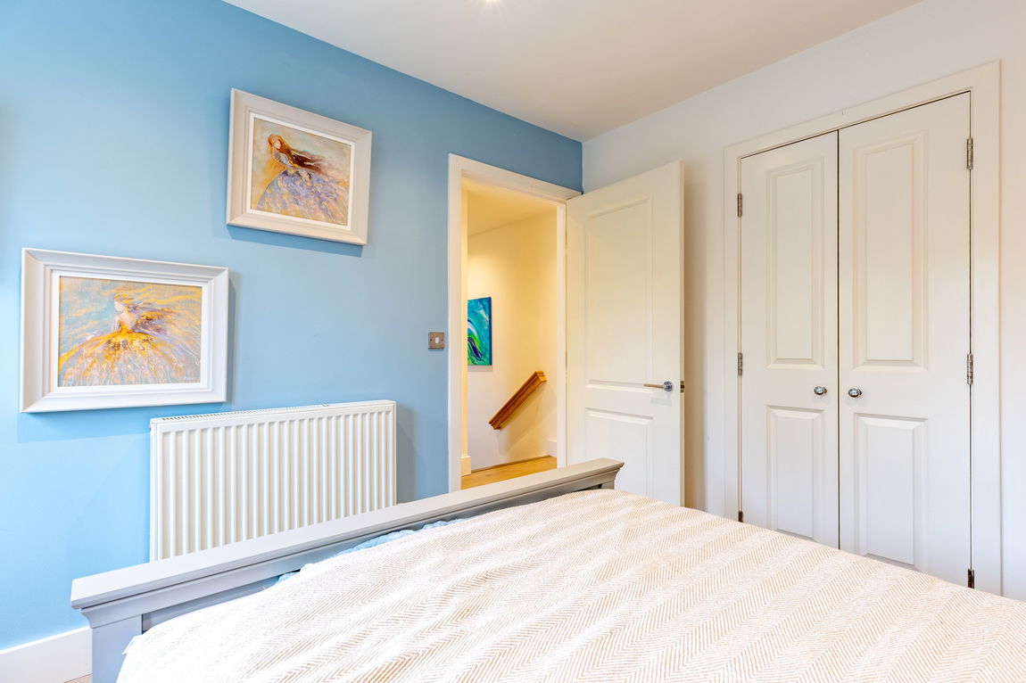 BEDROOM 2: A well-proportioned double bedroom with both front and side-facing windows and access to the mezzanine room above, alongside a built-in wardrobe. The current layout is well-suited for holiday letting use.