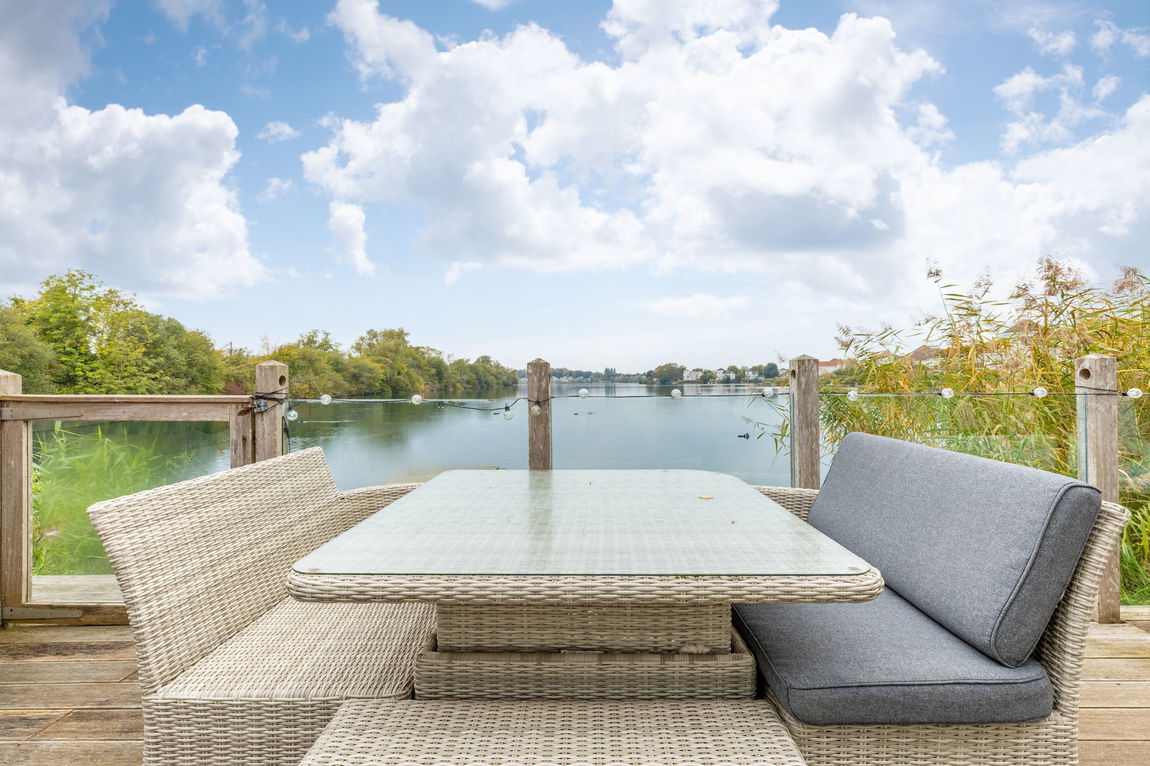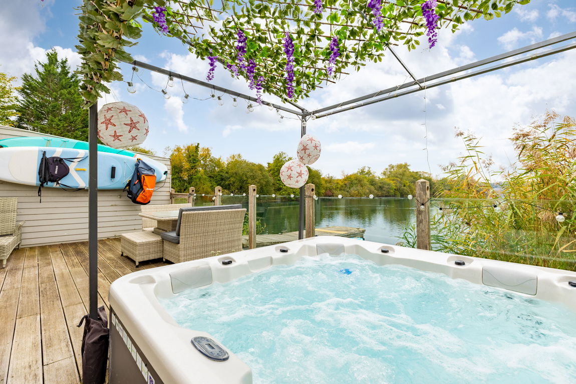 Designed to maximise both light and outlook, the property offers two distinct decked terraces. The spacious front deck captures the morning sun, while the expansive rear terrace provides panoramic lake views and a private hot tub - creating an exceptional space for entertaining or quiet evenings watching the wildlife on the water glide by.