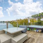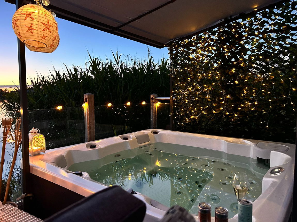 OUTSIDE: The south-facing deck spans the rear and side of the property, capitalising on the open lake aspect. The deck provides space for outdoor dining and seating, includes a hot tub, and offers direct access to the shared jetty for paddleboarding and other non-motorised water activities.