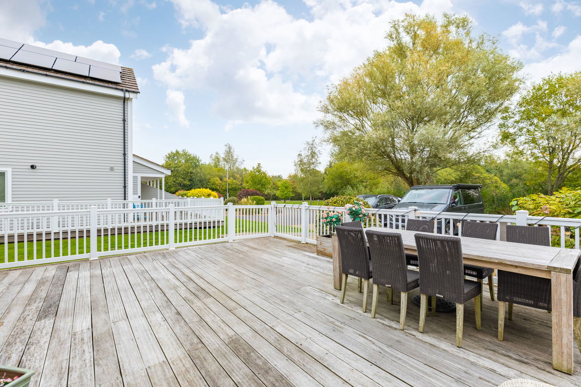 The decking has been refurbished with new structural supports and connects through to a generous front deck, creating multiple usable outdoor areas throughout the day
