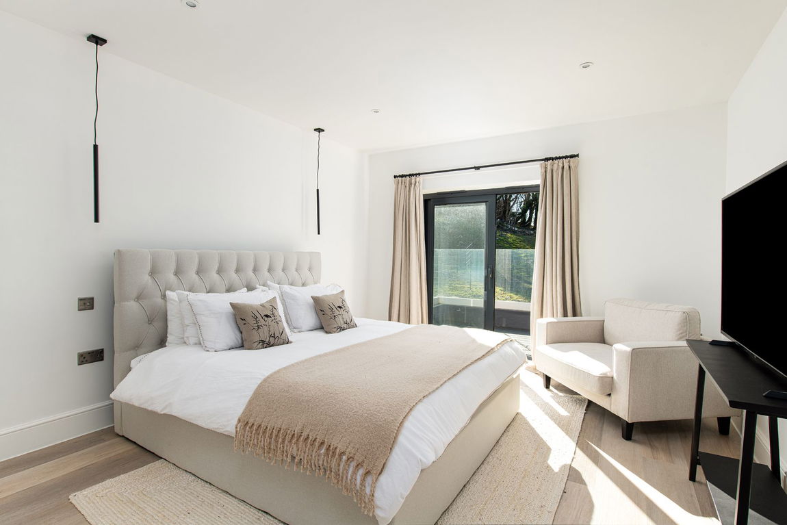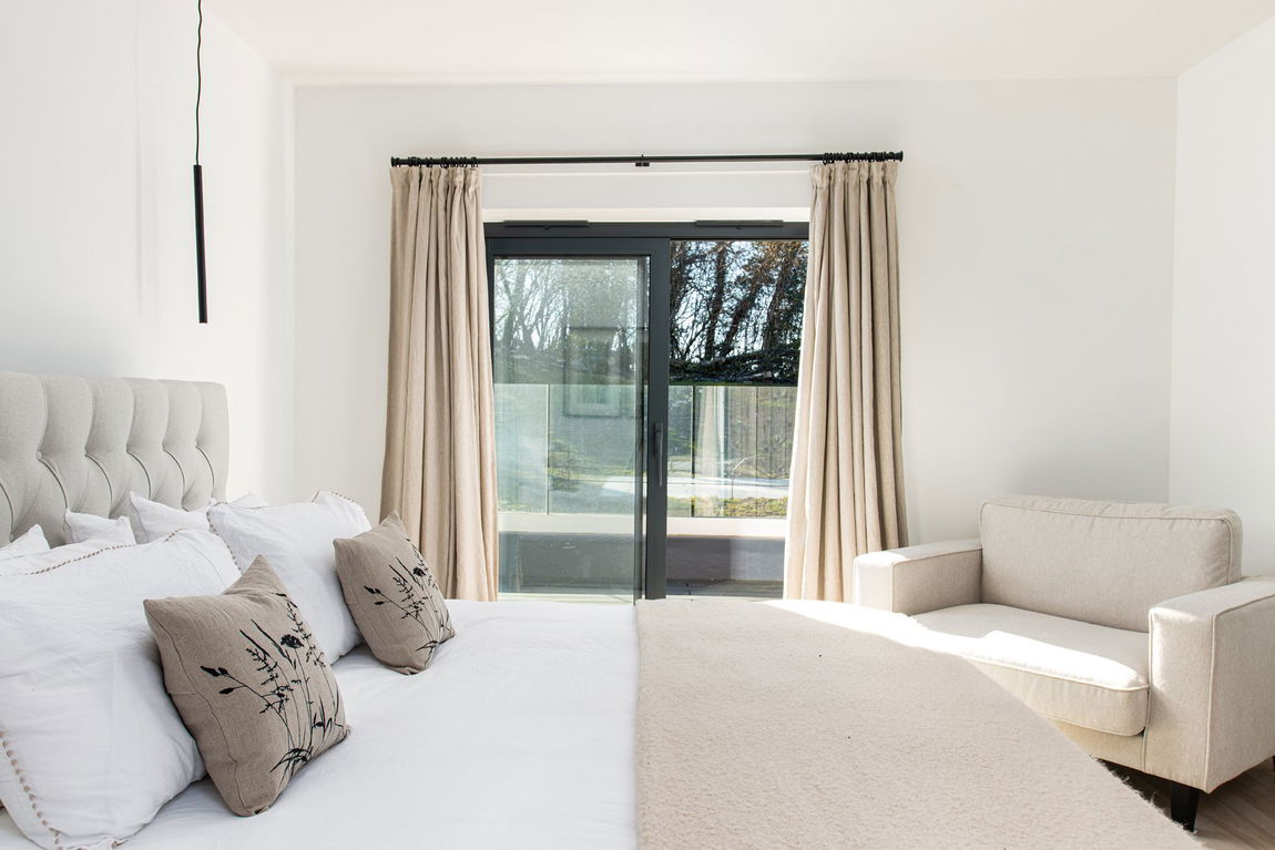 Step onto the elegant first-floor terrace, framed with a sleek glass balustrade, and take in uninterrupted natural views. Whether you’re enjoying an alfresco meal, soaking up the sun, or simply embracing the beauty that surrounds you, this space is designed for effortless outdoor living. Thoughtfully crafted with sustainability in mind, The Summer House combines contemporary design with eco-conscious construction, utilising locally sourced materials and the latest in sustainable building practices to ensure both luxury and minimal environmental impact.
