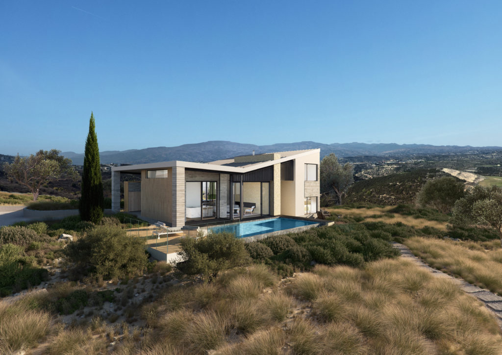 Nimbus residence is part of the Topos collection of designs at Minthis. The Outdoor terraces, the living and dining spaces, and pool deck all blend seamlessly making the most of the Mediterranean climate. Edges are blurred creating relaxed and comfortable seating and eating spaces linked to the landscape views stretching far into the distance. This property is part of the luxury lifestyle residential resort Minthis, which offers numerous benefits, services, and world-class facilities. These include an 18-hole championship golf course with a contemporary Clubhouse, a destination wellness Spa, sports ground, hotel-style accommodation, and a lively social square featuring a bar, restaurant, cafe, and boutique stores. Residents can also enjoy the resort’s nature trails, organic garden, and playgrounds, all set within a protected Natura 2000 landscape, reflecting a commitment to sustainability and a harmonious connection with nature. Details: 3 bedrooms 4 bathrooms, 3 ensuite and 1 guest toilet 1145 square meters plot Total covered area of 240 square meters Private swimming pool Private covered parking Underfloor heating Concealed VRV system Landscaped gardens Photovoltaic panels Amenities: Clubhouse with restaurant, cafe and bar Wellness Spa 18-hole golf course Amaracus restaurant Village centre with boutique stores Sports ground with tennis academy Children’s playground Hiking and Mountain bike paths Minthis is an exclusive residential retreat perched on a tranquil hilltop within a 5 million square meter Natura 2000 protected landscape, offering a harmonious blend of modernity, tradition, and nature. inspired by the local Cypriot landscape, Minthis embraces a philosophy of holistic wellbeing, connecting residents to nature while balancing adventure and discovery with peace and tranquility. The development offers a collection of bespoke Residences, Villas, and Suites, each thoughtfully designed to capture natural light and frame extraordinary views, while harnessing the cool hillside breezes. Ranging from intimate suites to expansive residences with 2 to 5 bedrooms, these homes emphasize sustainable design and long-term value.