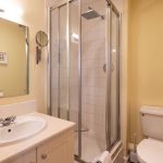 EN-SUITE SHOWER ROOM: Corner shower cubicle, wash hand basin and WC. Heated towel rail. New flooring installed recently.