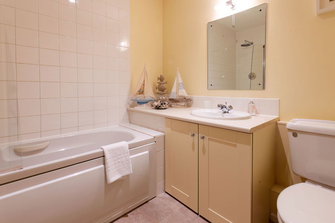 BATHROOM: A full length bath with shower over. WC and wash hand basin within a vanity unit. Heated towel rail. New flooring.